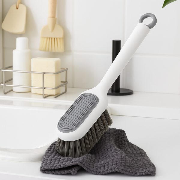 Cepillo de lavado blanco con tirita de silicona para colgar .