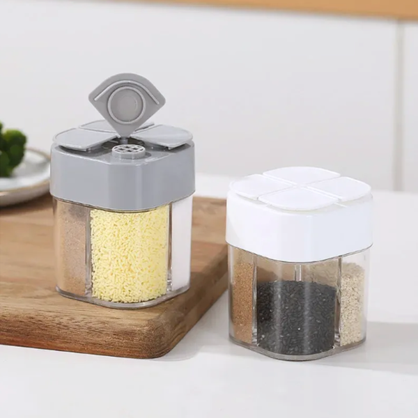Especiero plásticos con 4 compartimentos para uso diario en la mesa!
