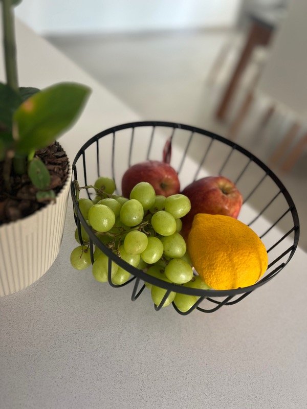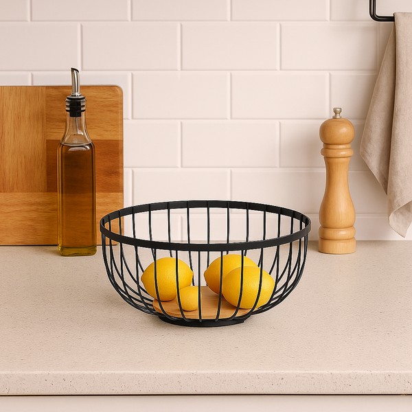 Frutera De hierro base bambú ideal para organizar las frutas arriba de la mesada y que quede bien lindas .