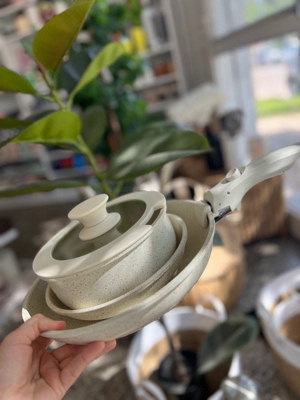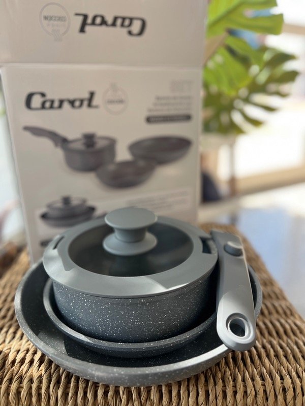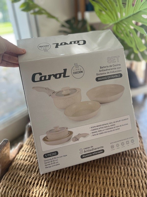 Set de batería marca Carol con mango desmontable y universal para usar en todas las partes. Son antiadherentes. Viene en dos colores! Y… son extremadamente hermosas