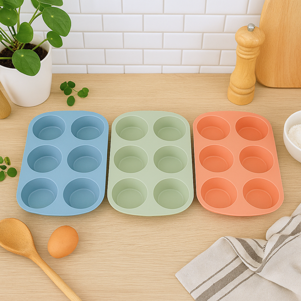 Molde para muffins de silicona x 6 apto horno y freidora eléctrica.
