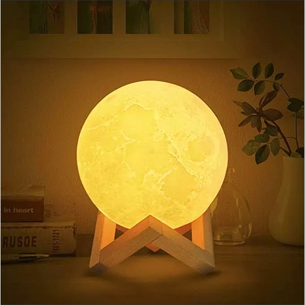 Lámpara Luna con base de madera.