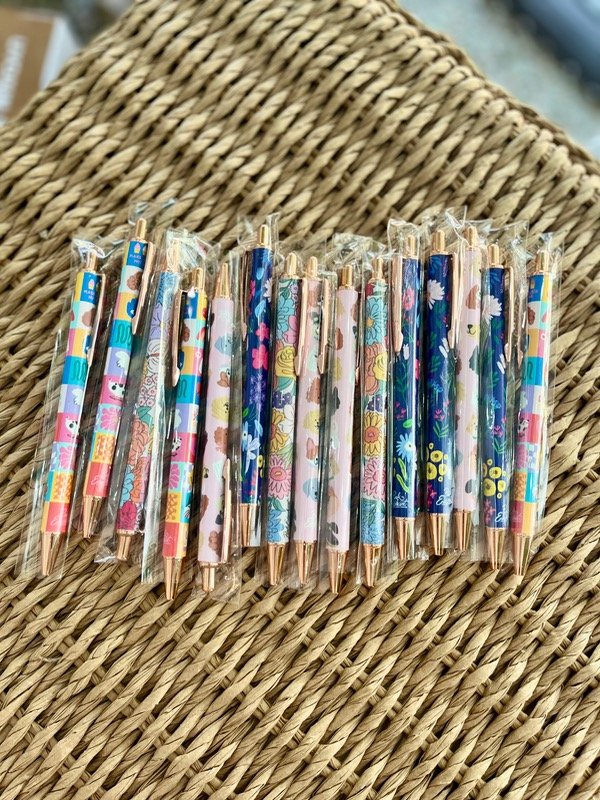 Detalles del producto: Birome retráctil, tinta azul, con detalles en dorado y el mango de cuerina.